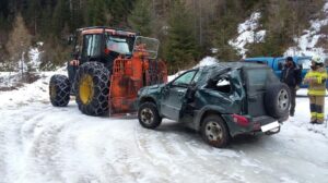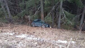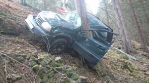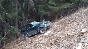 Ein PKW ist von einem Forstweg abgekommen und in die