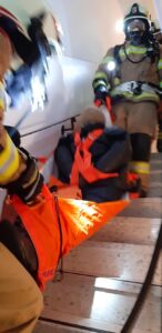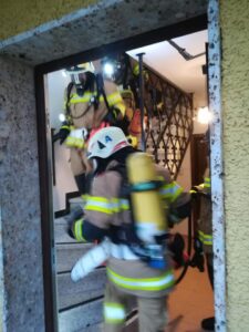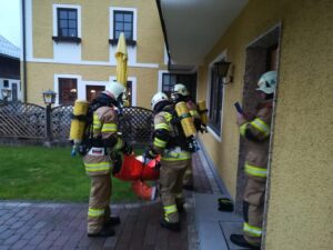 Zimmerbrand mit vermisster Person im Gasthof Kempenbruck war die gestrige Übungsannahme. Aufgabe bestand darin die Person unter schweren Atemschutz zu finden und zu retten, den Brand mit dem HD zu löschen.