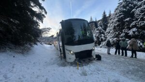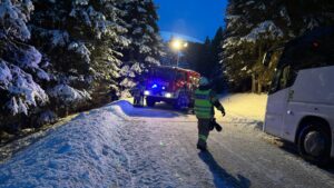 Gemeinsam mit der Feuerwehr Tamsweg unter Einsatz des Schweren Rüstfahrzeuges konnte der Reisebus mithilfe der Einbau- sowie Anbauseilwinde sicher auf die Straße gezogen werden.